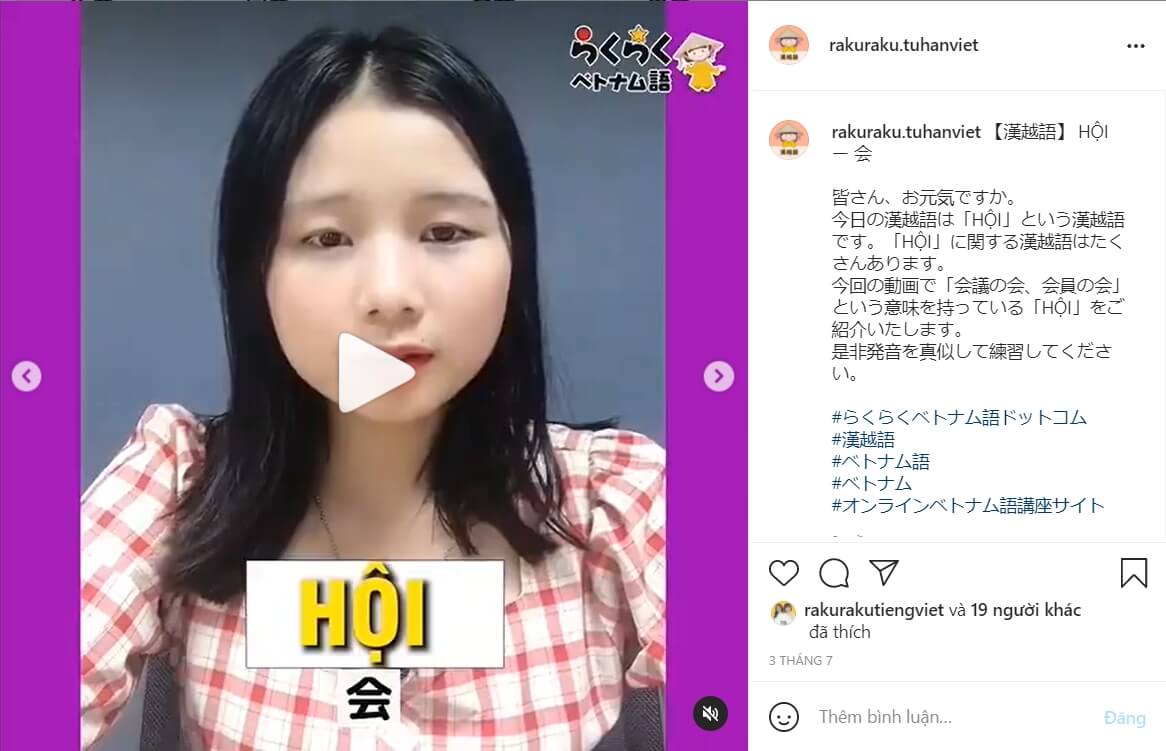 私たちの「rakuraku.tuhanviet」というインスタグラムチャンネルで漢越語の発音や簡単なフレーズの動画もありますので、