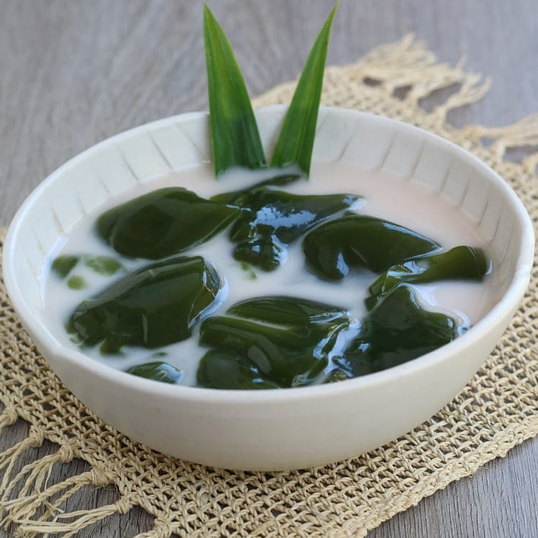 このゼリーは深い緑色で、やわらかく弾力があり、さっぱりとした味わいでひんやりしています。砂糖やココナッツミルクと一緒に食べることが多く、ベトナム南部でとても人気があります。🤗🥰